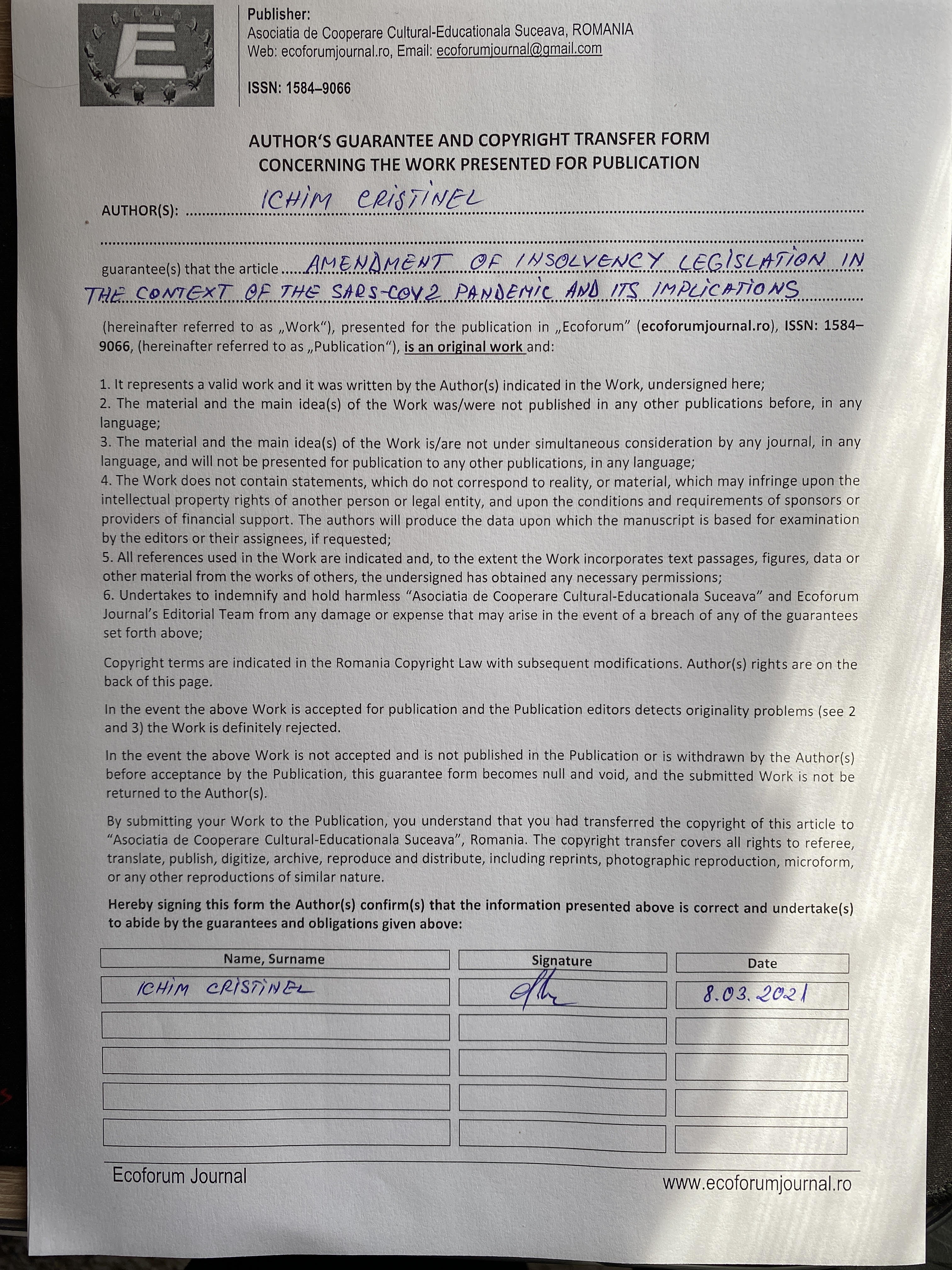 Cristinel, I. (2021). AMENDMENT OF INSOLVENCY LEGISLATION IN THE CONTEXT OF THE SARS-COV-2 PANDEMIC AND ITS IMPLICATIONS. Ecoforum Journal, 10(2). Retrieved from https://ecoforumjournal.ro/index.php/eco/article/view/1773