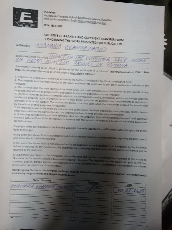 IMPACT OF THE CONSUMER PRICE INDEX ON GROSS DOMESTIC PRODUCT IN ROMANIA