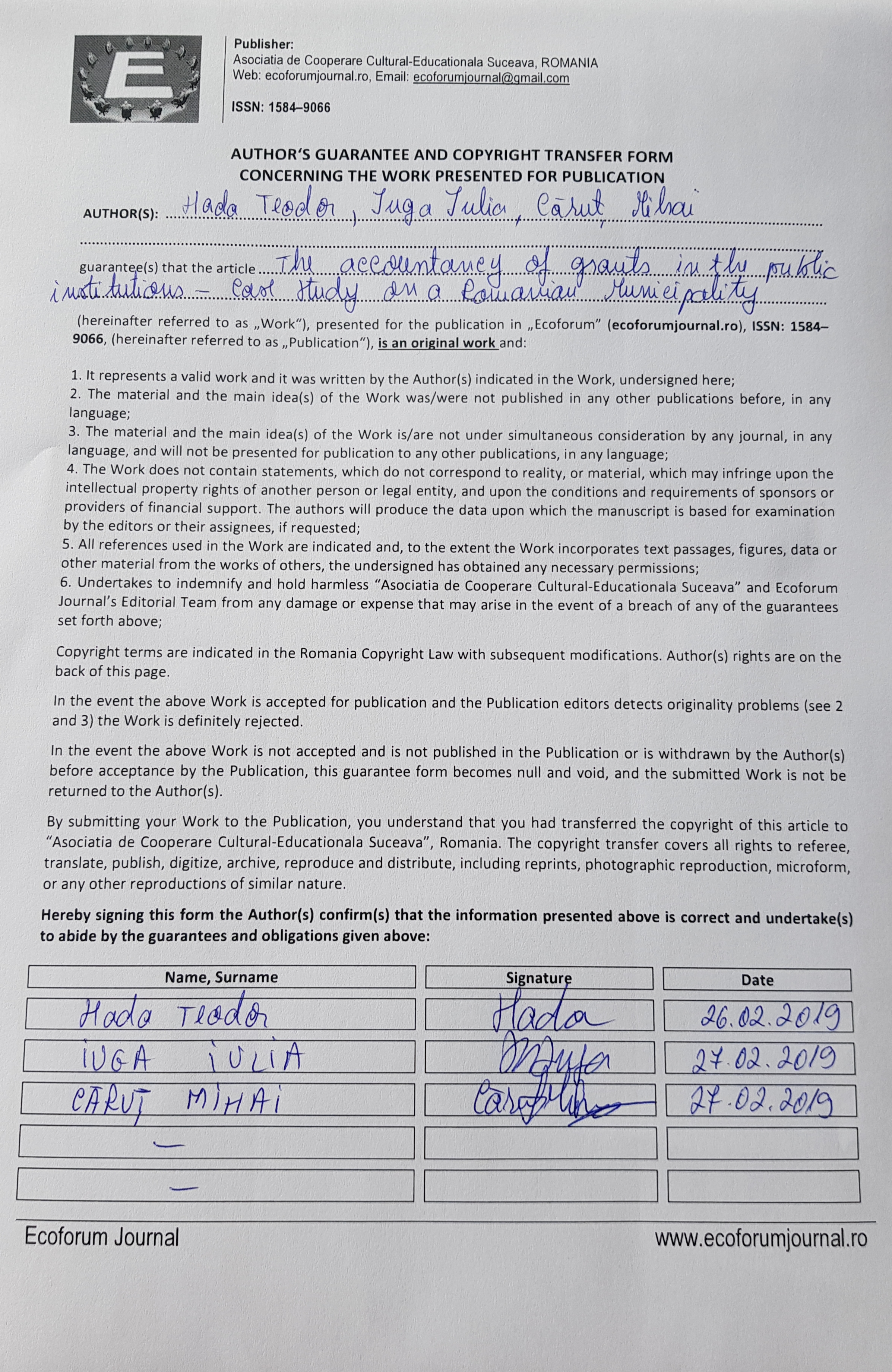 Hada, T., Iuga, I., & Carut, M. (2019). THE ACCOUNTANCY OF GRANTS IN THE PUBLIC INSTITUTIONS - CASE STUDY ON A ROMANIAN MUNICIPALITY. Ecoforum Journal, 8(2). Retrieved from https://ecoforumjournal.ro/index.php/eco/article/view/2069