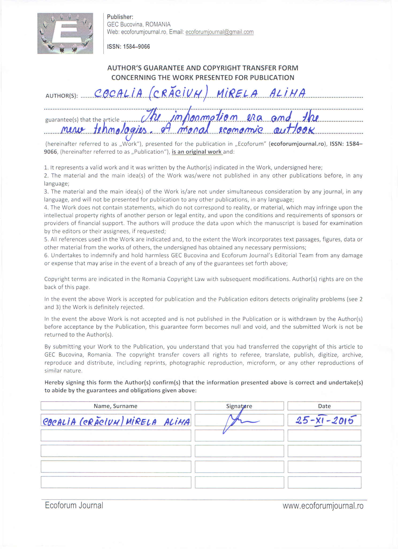COCALIA (CRĂCIUN), M. A. (2016). THE INFORMATION ERA AND THE NEW TECHNOLOGIES. A MORAL ECONOMIC OUTLOOK. Ecoforum Journal, 5(1). Retrieved from https://ecoforumjournal.ro/index.php/eco/article/view/2278