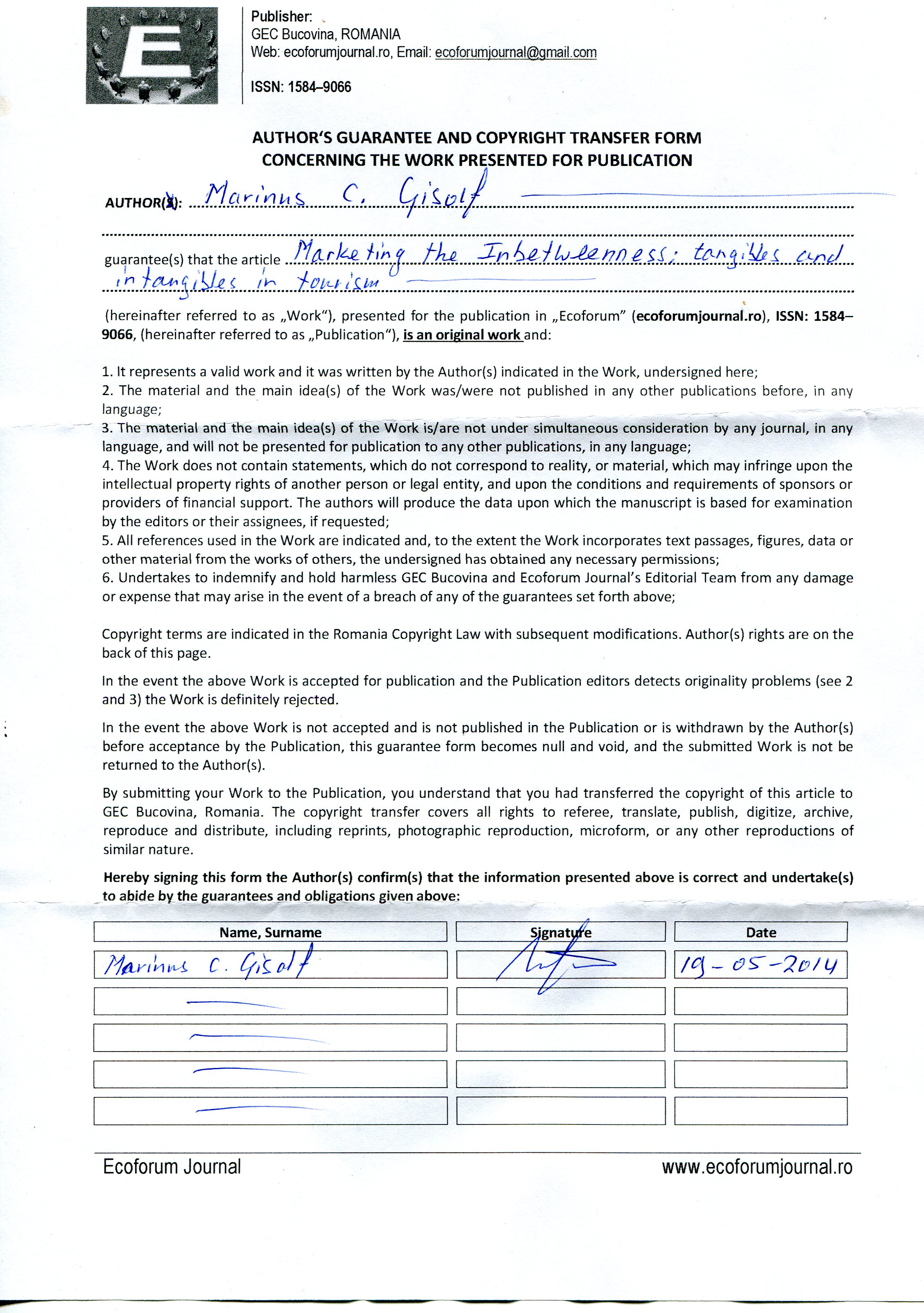 GISOLF, M. C. (2014). MARKETING THE INBETWEENNESS: tangibles and intangibles in tourism. Ecoforum Journal, 3(2), 1. Retrieved from https://ecoforumjournal.ro/index.php/eco/article/view/2305