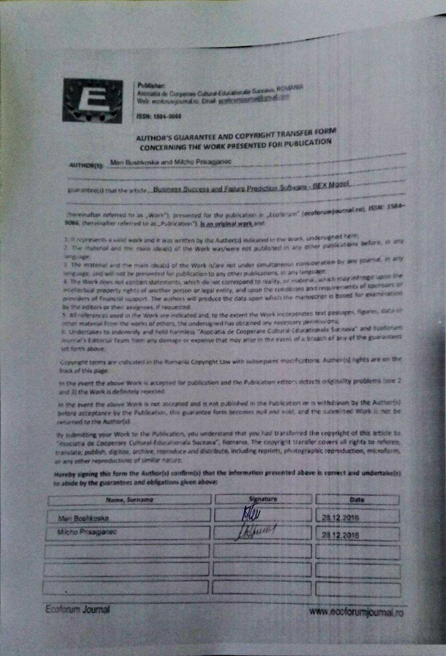 When evaluating and predicting the excellence of a company it is important to consider the economic environment in which the company has been dealing. This is we have decided to use the BEX model as it has been designed for the Croatian business environment which is similar to the Macedonian one.