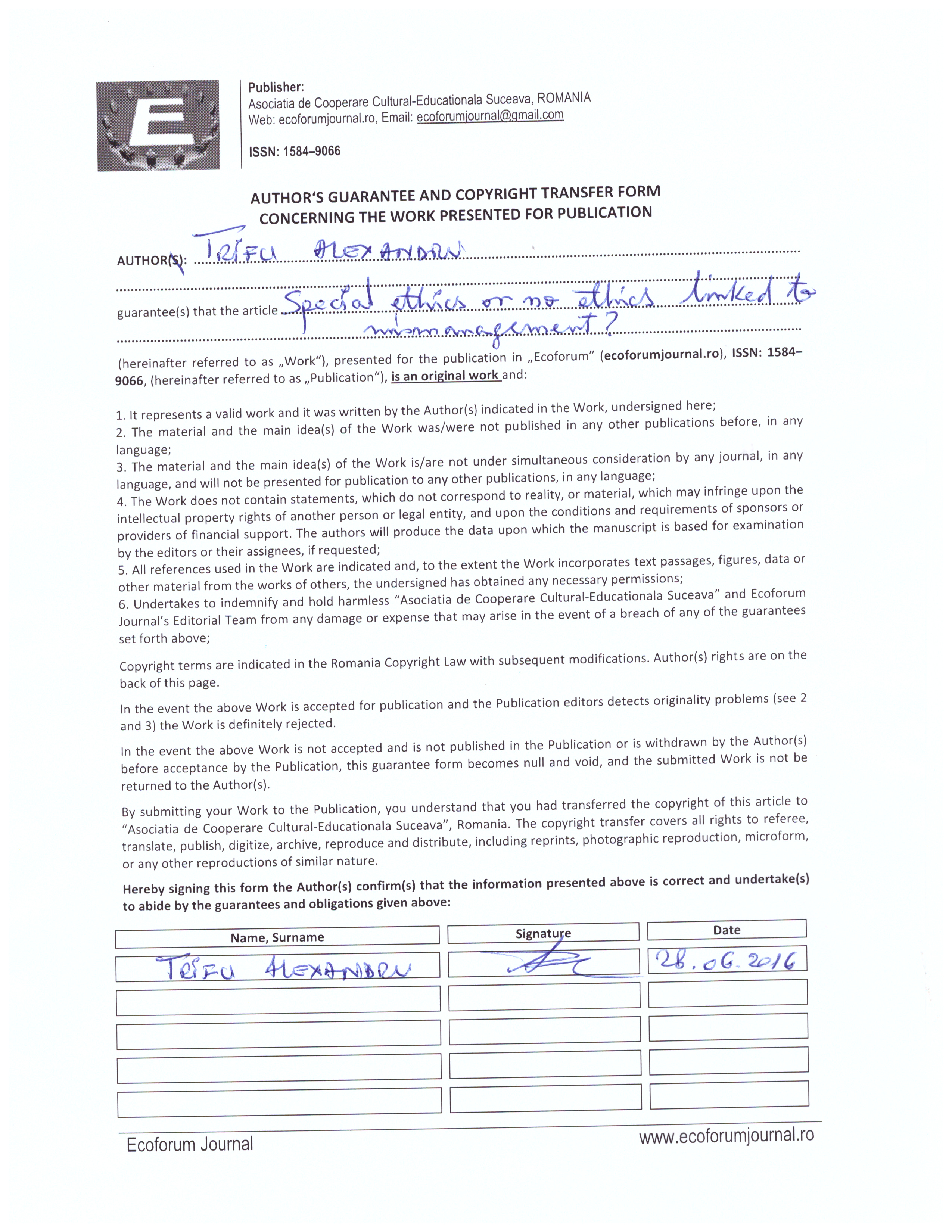 These issues we try to emphasize them and to find an approach to complete or to highlight the importance of Ethics as qualitative and substance element of today entities’ activities. These are the types of entities which tend to globalize and to enter in different political and economic spheres of influence, at regional or international levels.
