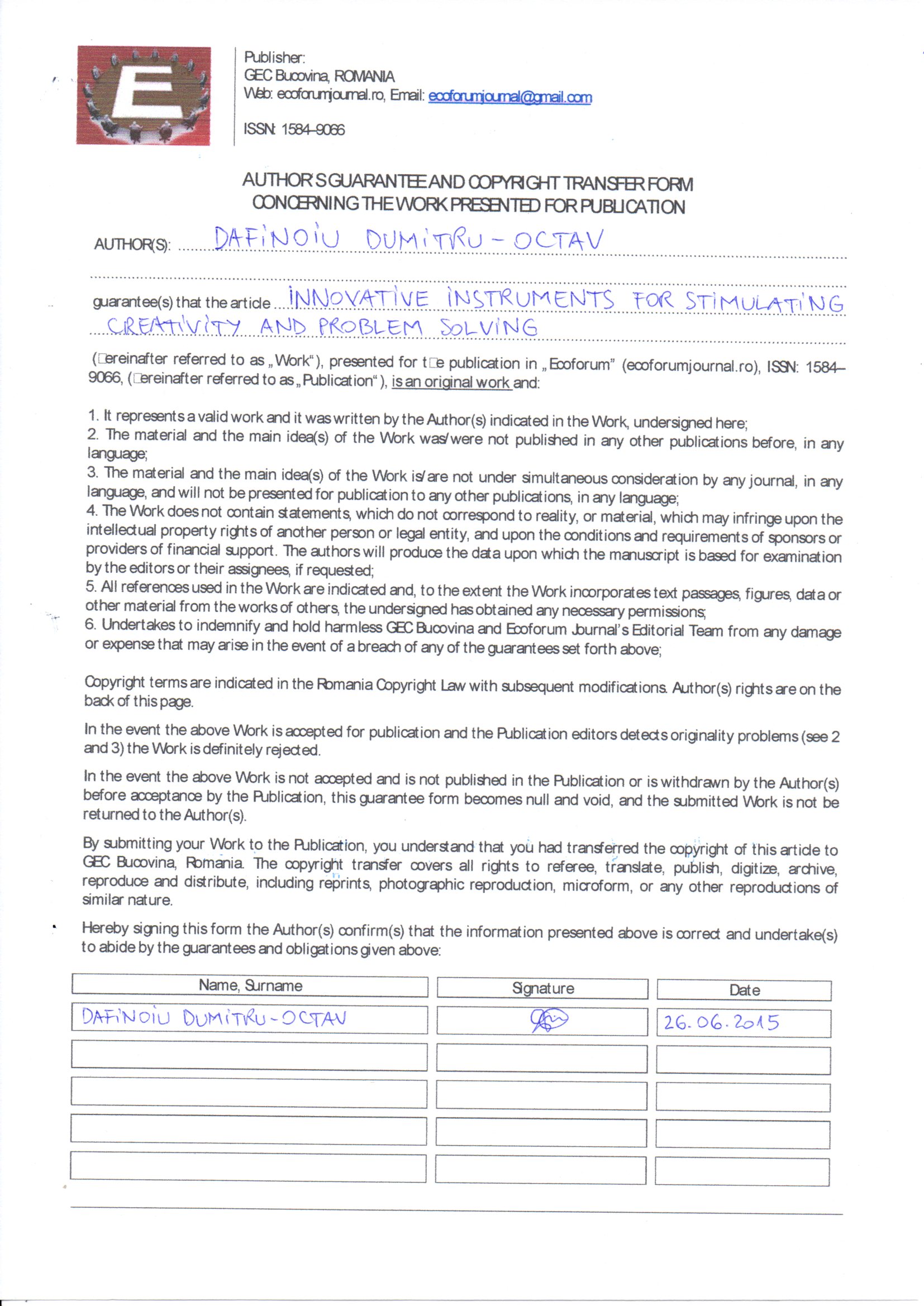 INNOVATIVE INSTRUMENTS FOR STIMULATING CREATIVITY AND PROBLEM SOLVING